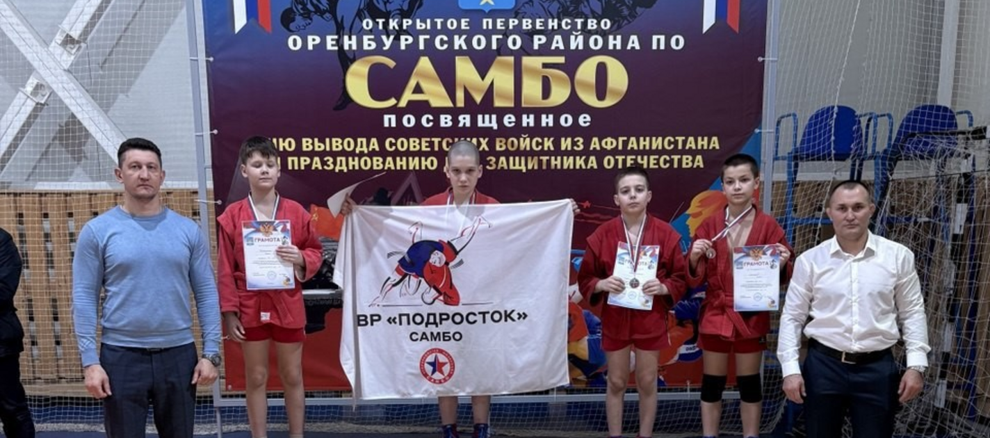 20 февраля 2026 года в селе Павловка Оренбургского района состоялось открытое первенство Оренбургского района по самбо, посвященное дню вывода Советских войск из Афганистана и празднованию дня защитника Отечества. От ЦВР «Подросток» в нём приняли участие спортсмены Щербаков Александр, Сабитов Тамерлан, Шарипов Ранель, Датов Христофор,  Растригин Станислав. Возглавлял команду тренер-преподаватель военно-спортивного отдела Бочаров Э.А., хотя спортсмены занимаются также у других тренеров ЦВР – Старостина Н.Н. и Пашкина В.А.