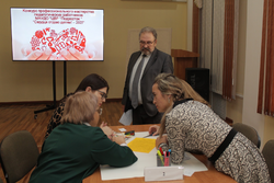 Конкурс продолжает свою работу, и очередным этапом испытаний стало проведение «Импровизационного конкурса». Детали задания были сообщены участникам непосредственно перед стартом мероприятия. Для выполнения задания участники формировались в команды посредством случайной жеребьёвки. Формат проведения конкурса представлял собой стендовую презентацию проекта «Сетевое взаимодействие учреждений дополнительного образования с включением семьи в качестве стратегического партнера единого образовательного пространства».