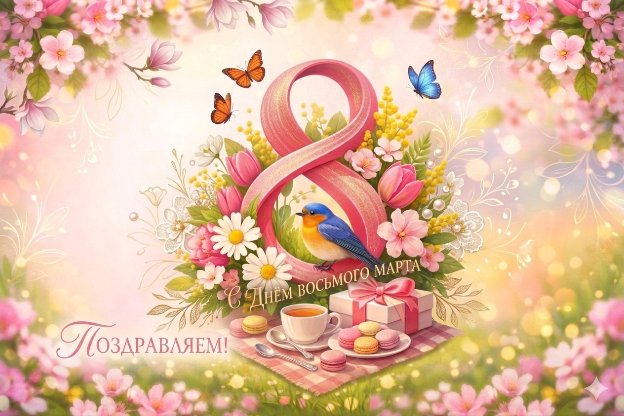 Дорогие женщины! Поздравляем вас с прекрасным весенним праздником — 8 Марта! Пусть каждый день будет наполнен теплом, улыбками и вдохновением. Желаем вам радости, гармонии, исполнения желаний и как можно больше счастливых моментов рядом с близкими людьми. Пусть весна приносит новые силы, яркие идеи и хорошее настроение!